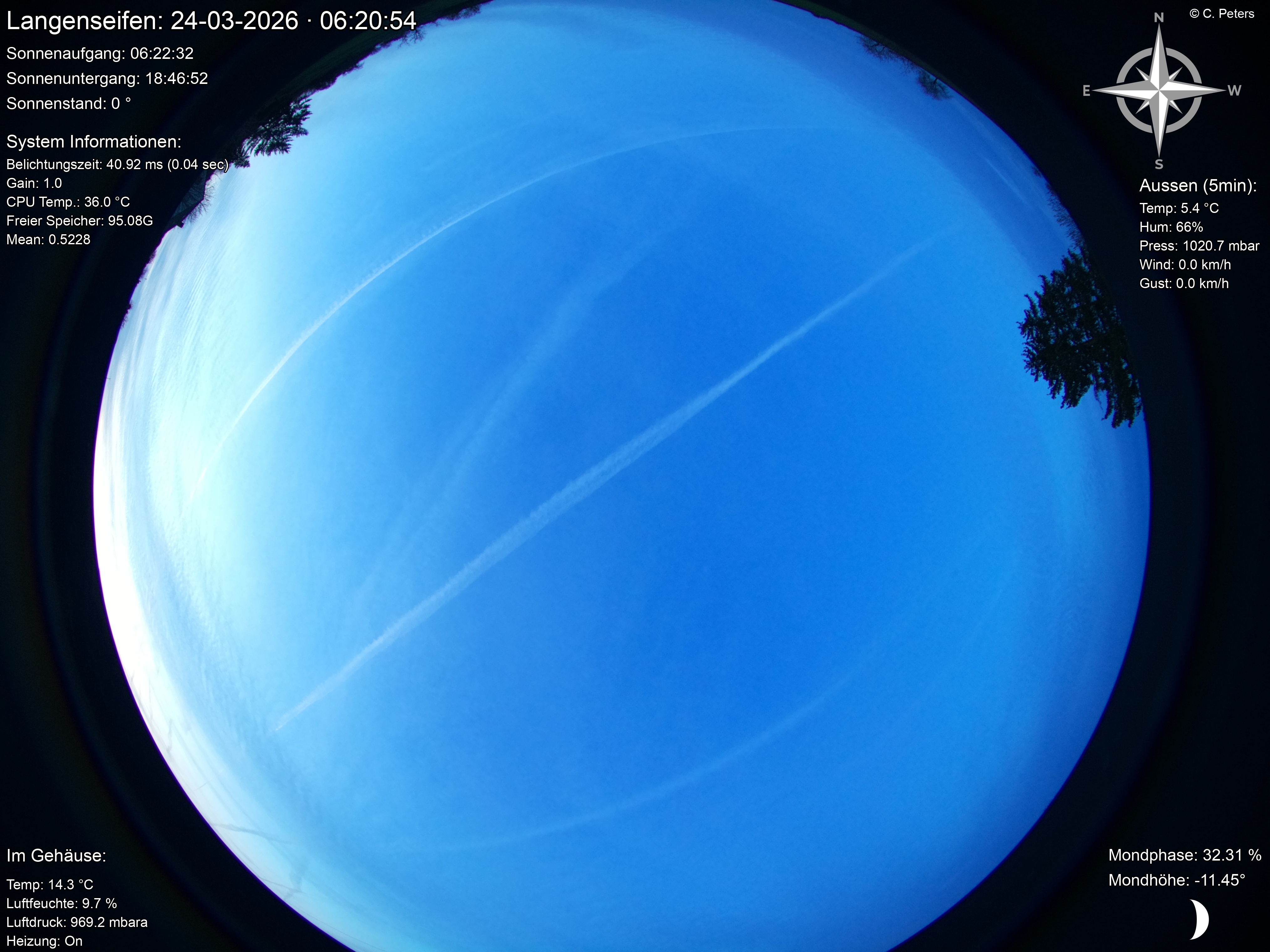 Diese Seite nutzt die Daten einer Vantage Pro2 Wetterstation, kontrolliert durch 'weewx'. Die auf diesen Seiten bereitgestellten Wetterdaten werden von einer Hobby-Station erstellt! Es wird keine Gewährleistung und Garantie auf die Richtigkeit der Daten abgegeben.